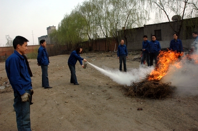 濟(jì)源公司訊 繼3月初邀請(qǐng)省消防協(xié)會(huì)教官進(jìn)行消防知識(shí)培訓(xùn)后,3月25日下午,濟(jì)源中裕公司再度把握盤點(diǎn)、檢查消防器材的契機(jī),以藥劑壓力不足或需更換的滅火器為練兵裝備,組織其所有中層干部及各部門專、兼職安全員、消防員舉行了一場(chǎng)消防滅火演習(xí)。通過(guò)實(shí)際動(dòng)手操作,參演人員對(duì)滅火器的性能、原理及使用方法都有了更為深刻的了解。