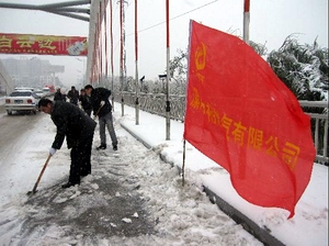 漯河公司訊 一場大雪,在把沙澧河兩岸妝點的銀裝素裹、分外多姿的同時,亦給出行市民的安全保障增設了額外的難度系數。秉承中裕便民、利民的一貫宗旨,漯河公司于雪后積極組織工作人員承接下了該市交通要道——泰山路沙河大橋的鏟雪除冰任務,為切實加強廣大市民的交通出行安全保障做出了自己努力和貢獻。