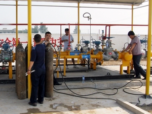 偃師公司訊 7月23日下午,偃師顧縣工業區輸配門站及中壓燃氣管網順利實現置換通氣。省煤氣集團安全管理處郭振龍處長、管道公司張合壽總經理等相關領導及偃師中裕段區高總經理、魏學全副總經理蒞臨現場給予了技術指導和支持。