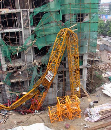 永城塔吊倒塌事故:6月20日下午,永城市交通局職工樓工地發(fā)生一起安全事故,工人升高塔吊時(shí),塔身突然攔腰倒下,40多米長(zhǎng)的吊臂從高空砸落,當(dāng)場(chǎng)砸死1人、砸傷5人,永城市交通局東墻被砸開(kāi)一個(gè)豁口,院內(nèi)一輛面包車被砸壞。