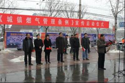 在永城公司,一場(chǎng)聲勢(shì)浩大的《城鎮(zhèn)燃?xì)夤芾項(xiàng)l例》宣傳周啟動(dòng)儀式在永城市人大副主任陳德志及建委主要領(lǐng)導(dǎo)的指導(dǎo)、見(jiàn)證下隆重舉行,永城公司員工及建委燃?xì)廪k相關(guān)人員在盤(pán)鼓隊(duì)、宣傳車的配合下,克服雪后濕滑等困難,通過(guò)設(shè)立展板、發(fā)放宣傳材料等形式,沿繁華街區(qū)對(duì)《城鎮(zhèn)燃?xì)夤芾項(xiàng)l例》進(jìn)行了巡回宣傳。