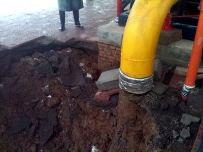三門峽公司訊 受連續(xù)大規(guī)模降雨影響,三門峽公司靈寶大王站區(qū)及三門峽門站院內(nèi)出口管線處相繼于9月11日晚間、9月13日上午出現(xiàn)嚴(yán)重塌陷。接到值班人員匯報(bào)后,三門峽公司迅速組織相關(guān)人員進(jìn)行搶險(xiǎn)作業(yè),及時(shí)對(duì)險(xiǎn)情予以了有效控制,確保了燃?xì)夤艿赖陌踩珶o恙。