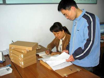工作人員正在對內業資料進行檢查