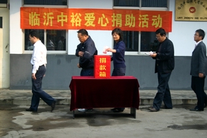 臨沂中裕訊 日前,臨沂中裕全體干職員工攜手業(yè)務、施工單位共同發(fā)起捐款活動,于獵獵寒風之中給困難員工周仕利同志及其家人送去了一份暖烘烘、沉甸甸的關懷。