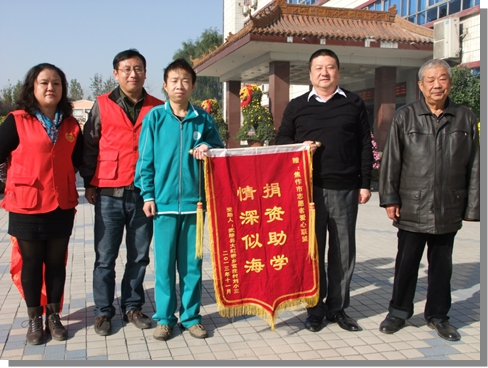 焦作公司訊 11月7日清晨,家住武陟縣大虹橋鄉官莊村的劉小三同學在其爺爺和叔叔的陪同下,特意為焦作志愿者愛心聯盟送來錦旗,以感謝其長期以來的資助和關愛。焦作公司董事長/總經理隋耀光作為愛心聯盟的理事長接受錦旗,并與學生及家長親切交談。