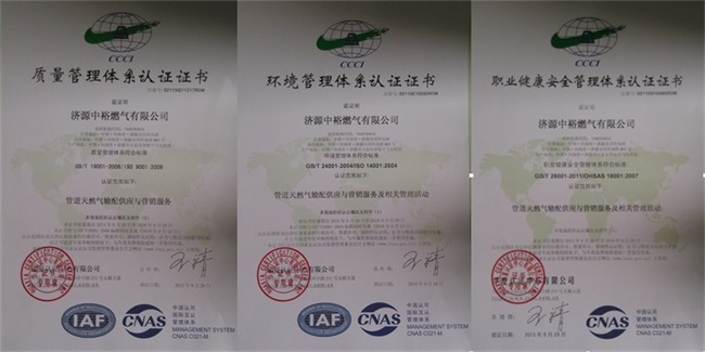 濟源公司訊 10月26日,濟源公司拿到了ISO9001、ISO14001、OHSAS18001 三項管理體系認證證書,于各兄弟公司中率先通過“三標”管理體系一體認證。