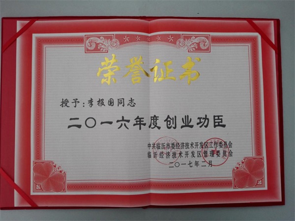 大會回顧了開發區2016年的整體工作開展情況,部署了2017年的重點工作,并對為開發區建設做出突出貢獻的先進集體和個人進行了表彰。臨沂中裕能源獲授2016年度“功勛企業”榮譽稱號,董事長李報國先生獲授“創業功臣”榮譽稱號。